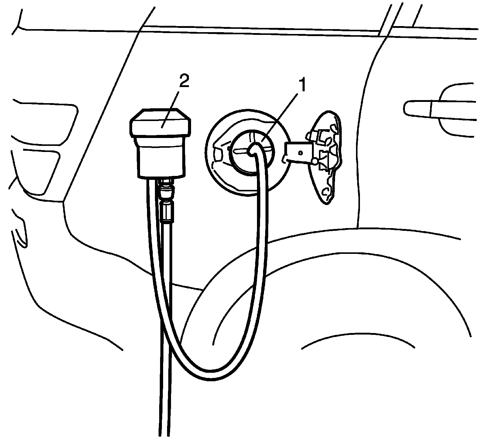 7. Connect the nitrogen/smoke hose onto the fuel cap adapter (1).