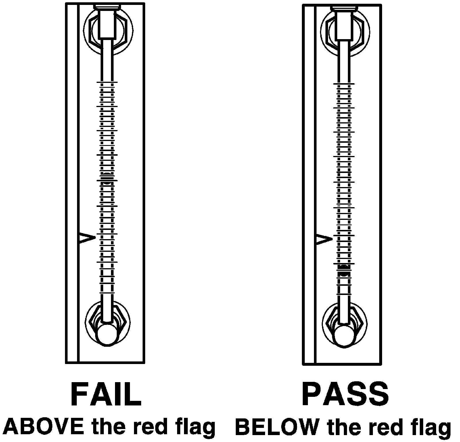 15. Compare the stable floating indicator position to the red flag as follows.