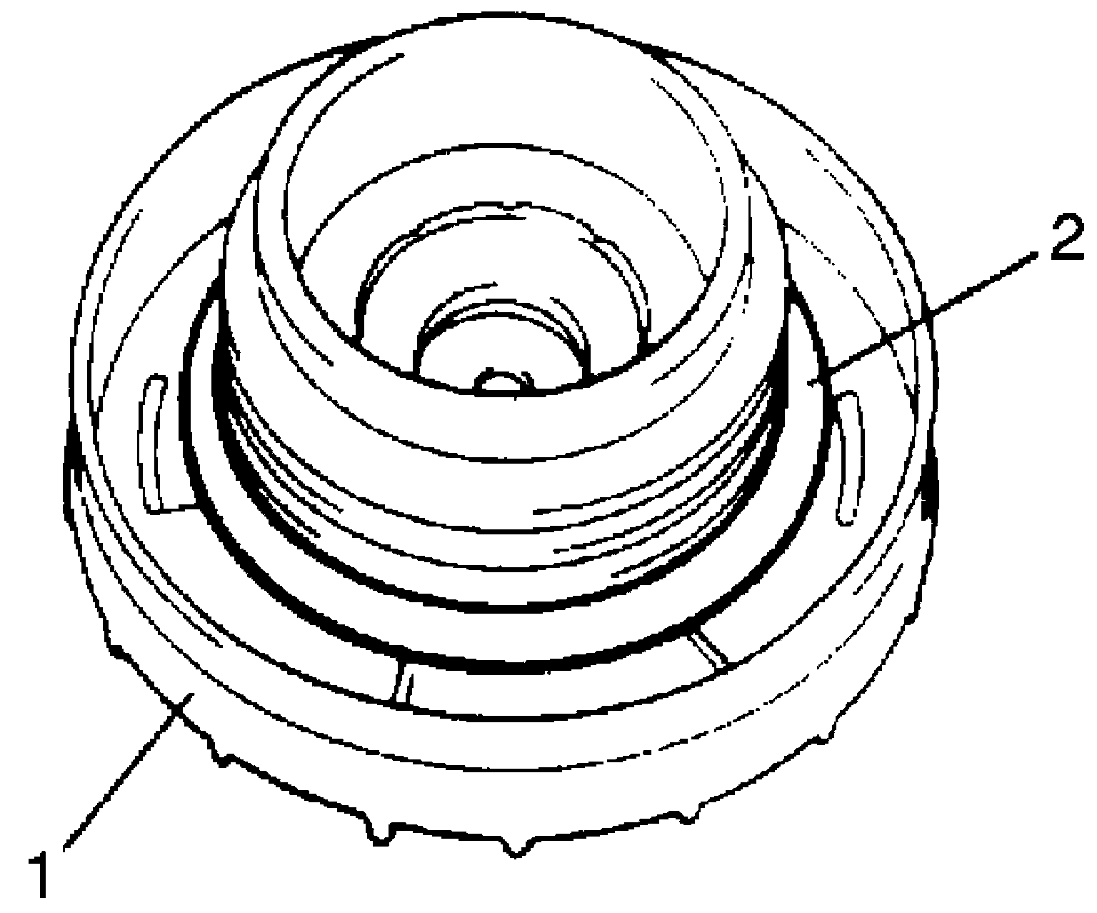 Remove cap (1), and check gasket (2) for even filler neck imprint, and deterioration or any damage. If gasket is defective, replace cap.