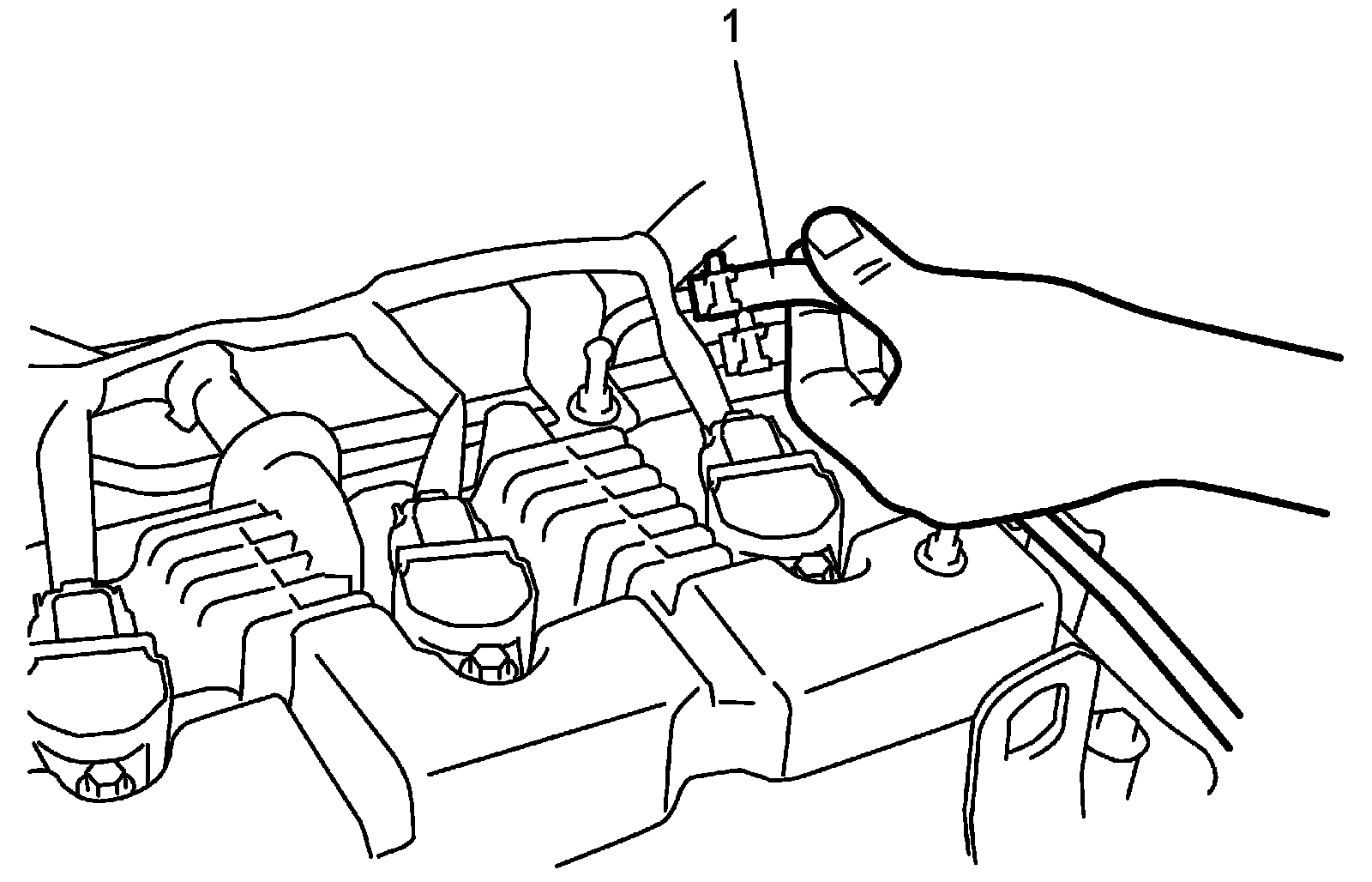 3. Fuel pressure should be felt at fuel feed hose (1) for about 2 sec. after turning ignition switch to ON position.