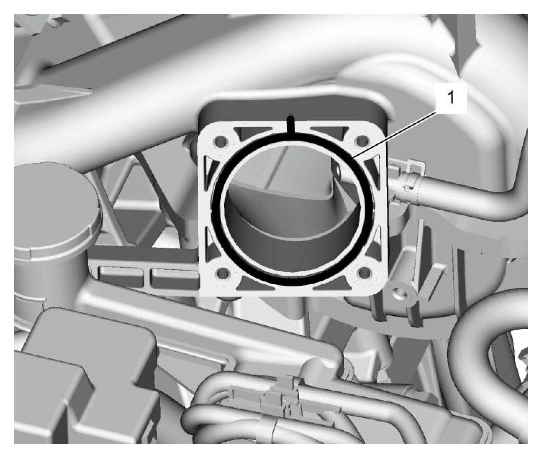 1) Clean mating surfaces and install new throttle body gasket (1) to intake manifold.