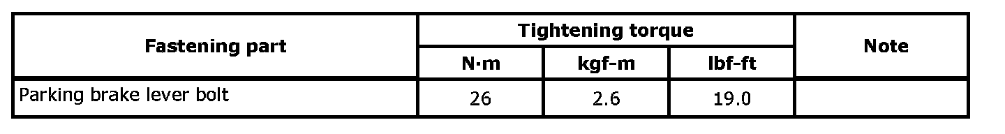 The specified tightening torque is described in the following. Parking Brake Cable Components