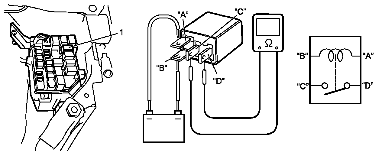 2. Remove starting motor control relay (1) from fuse box No.1.