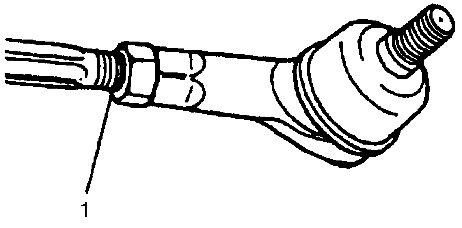 6) Install tie-rod end lock nut and tie-rod end to tie-rod. Position lock nut to marking (1) made in removal.