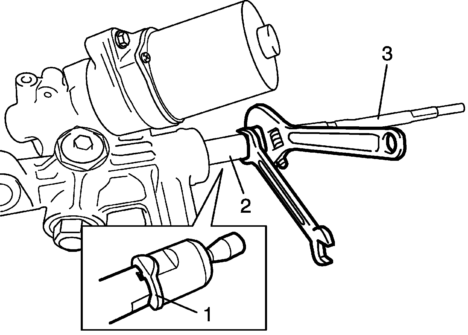 1) Install tie-rod (1) and tie-rod lock washer to rack (2).