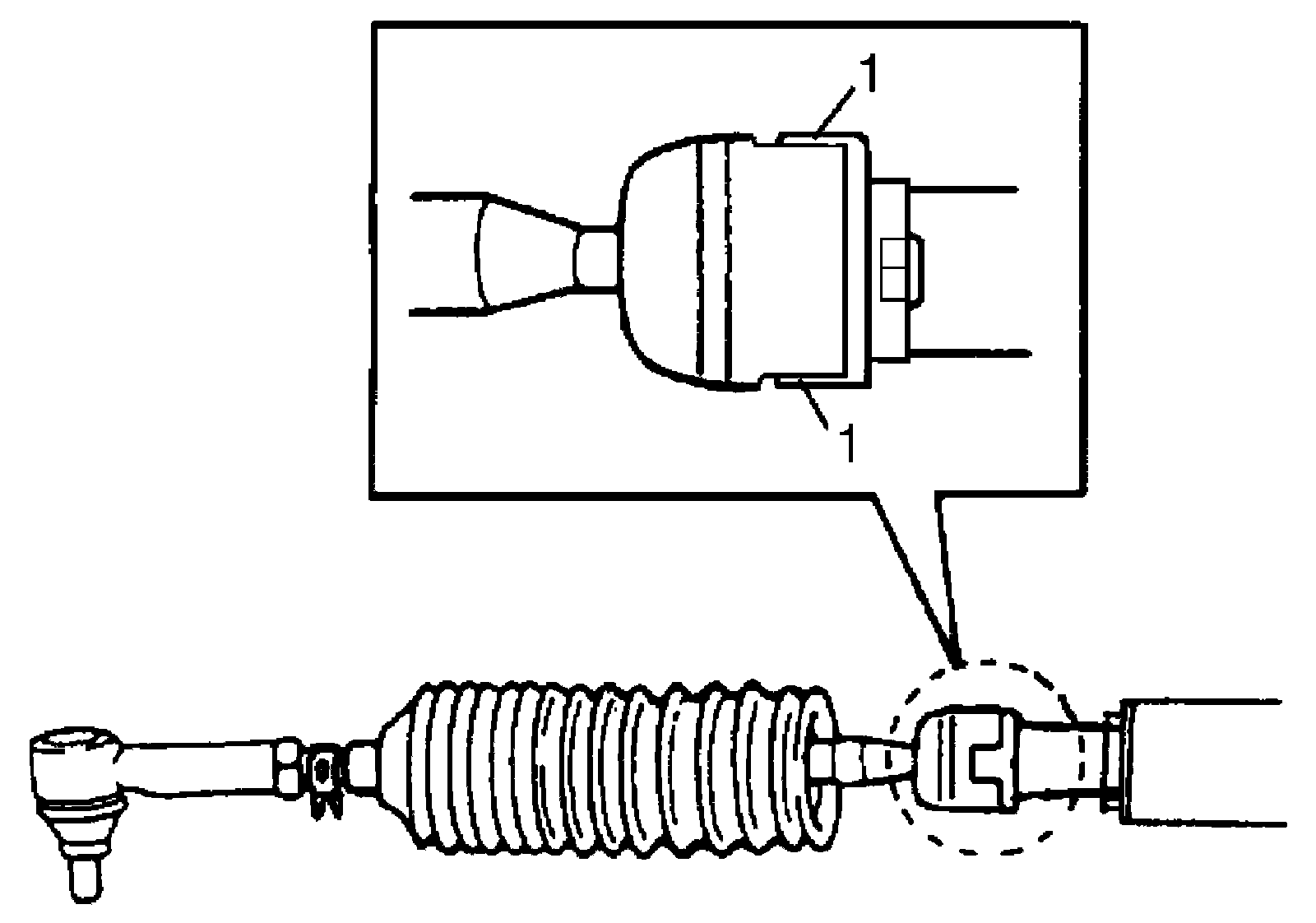 3) For ease of adjustment after installation, make marking (1) of tie-rod end lock nut position of tie-rod thread.