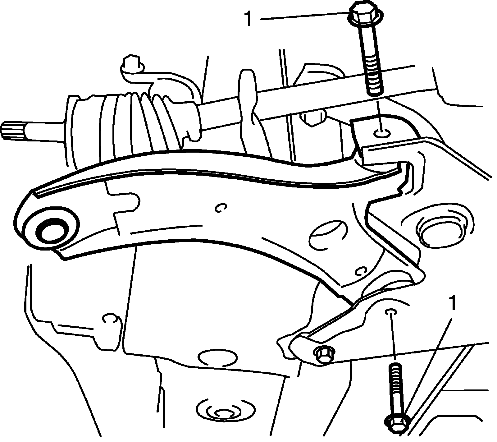 1) Install suspension arm as shown but tighten suspension arm bolts (1) only temporarily.