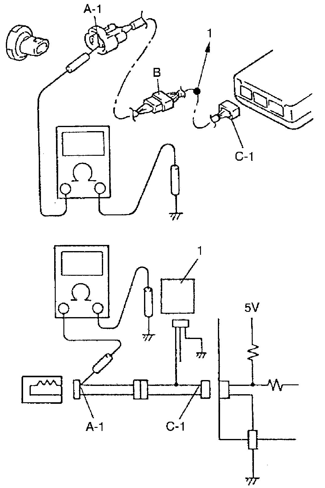 "C-1" and body ground: Approx. 5 V