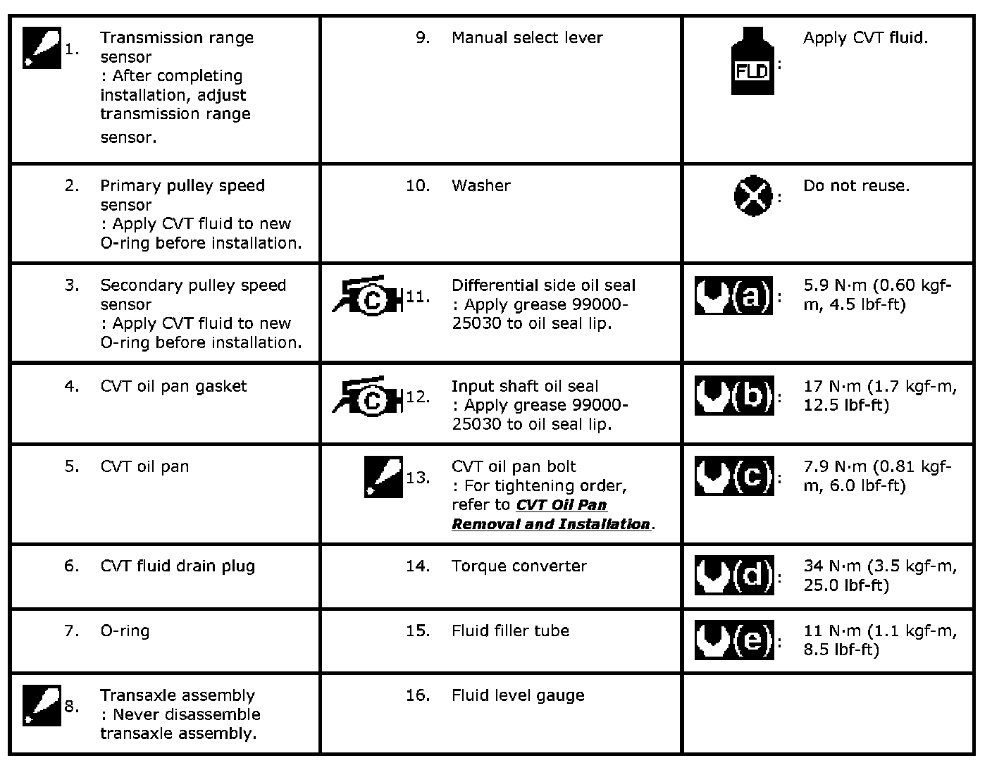 CVT Assembly Components