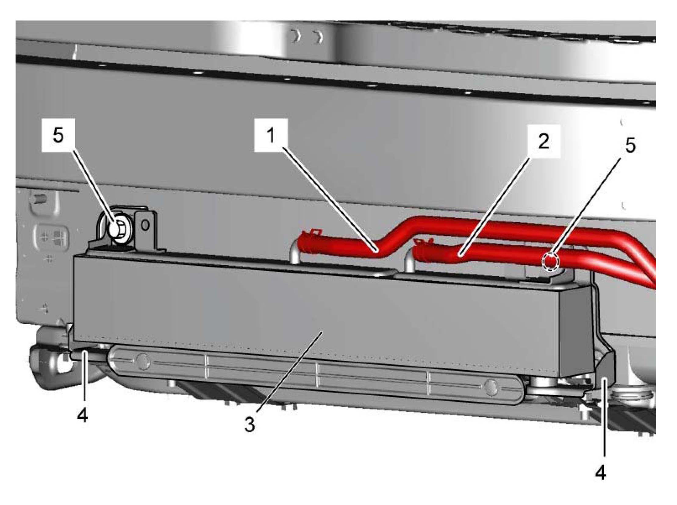 ^ Tighten CVT fluid cooler bolts (1) to specified torque.