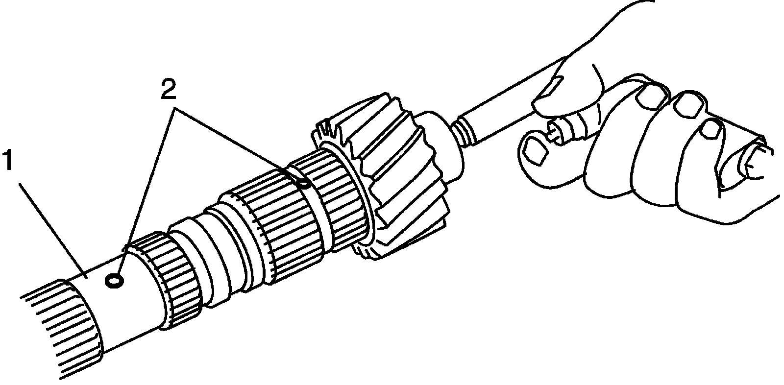 ^ To ensure lubrication of countershaft (1), air blow oil holes (2) and make sure that they are free from any obstruction.