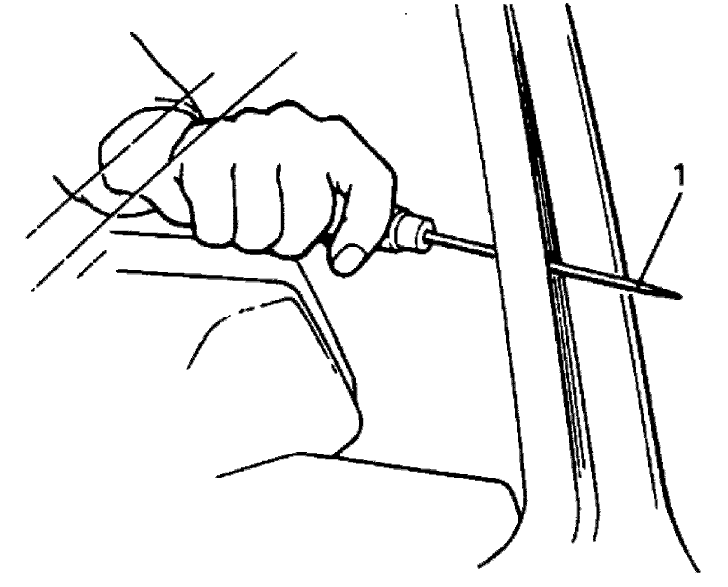 NOTE: Use piano string (2) as close to glass as possible so as to prevent damage to body and instrument panel.