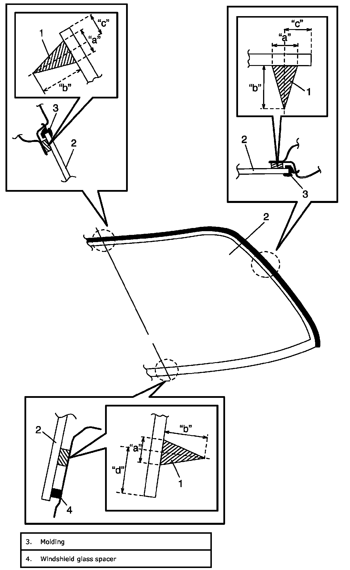 The windshield is installed by using a special type of adhesive (that is, one component urethane adhesive used with primer). For the windshield replacement, it is important to use an adhesive which provides sufficient adhesion strength and follow the proper procedure.