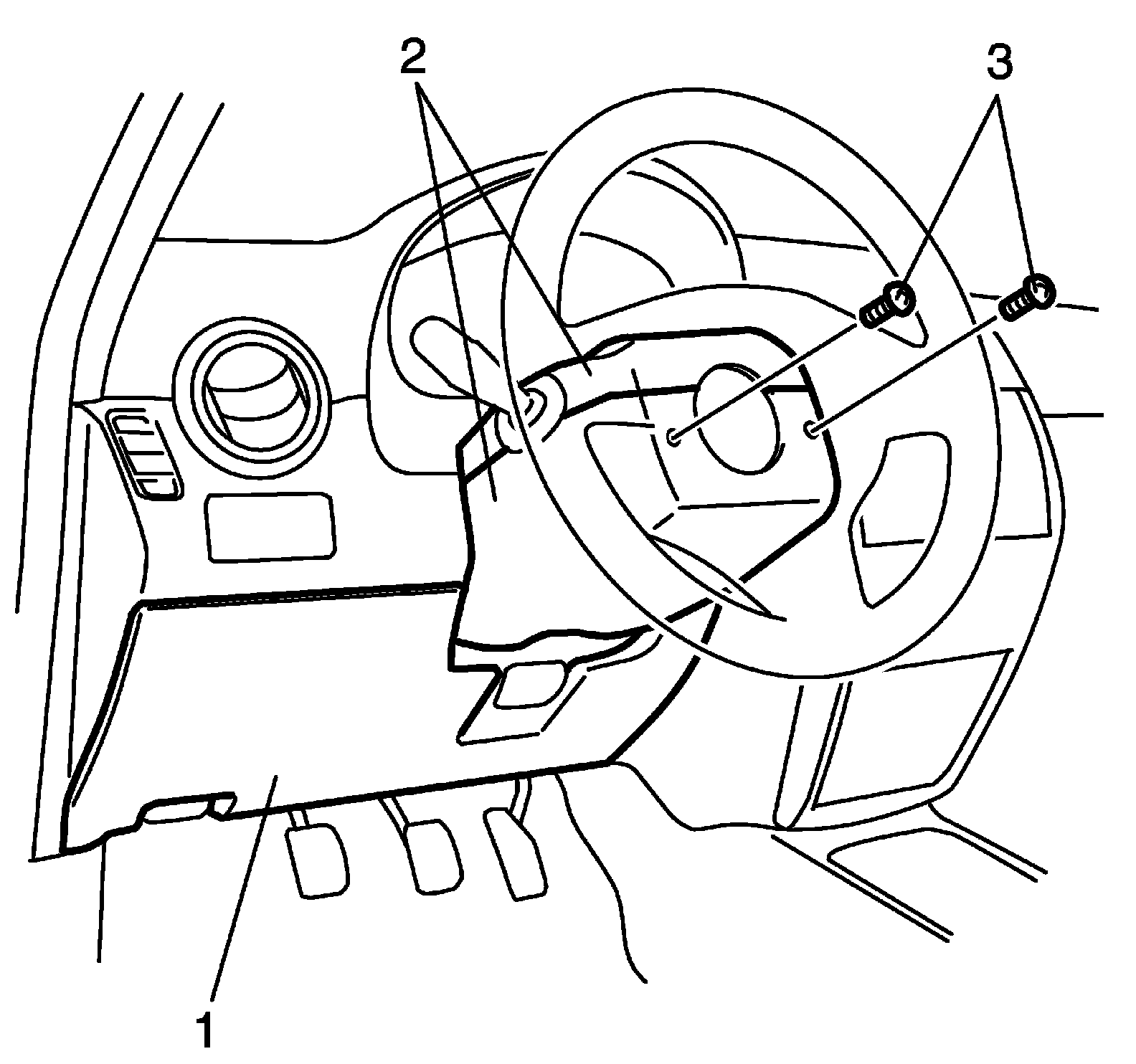 Turn steering wheel to access steering column cover rear end screws (3).
