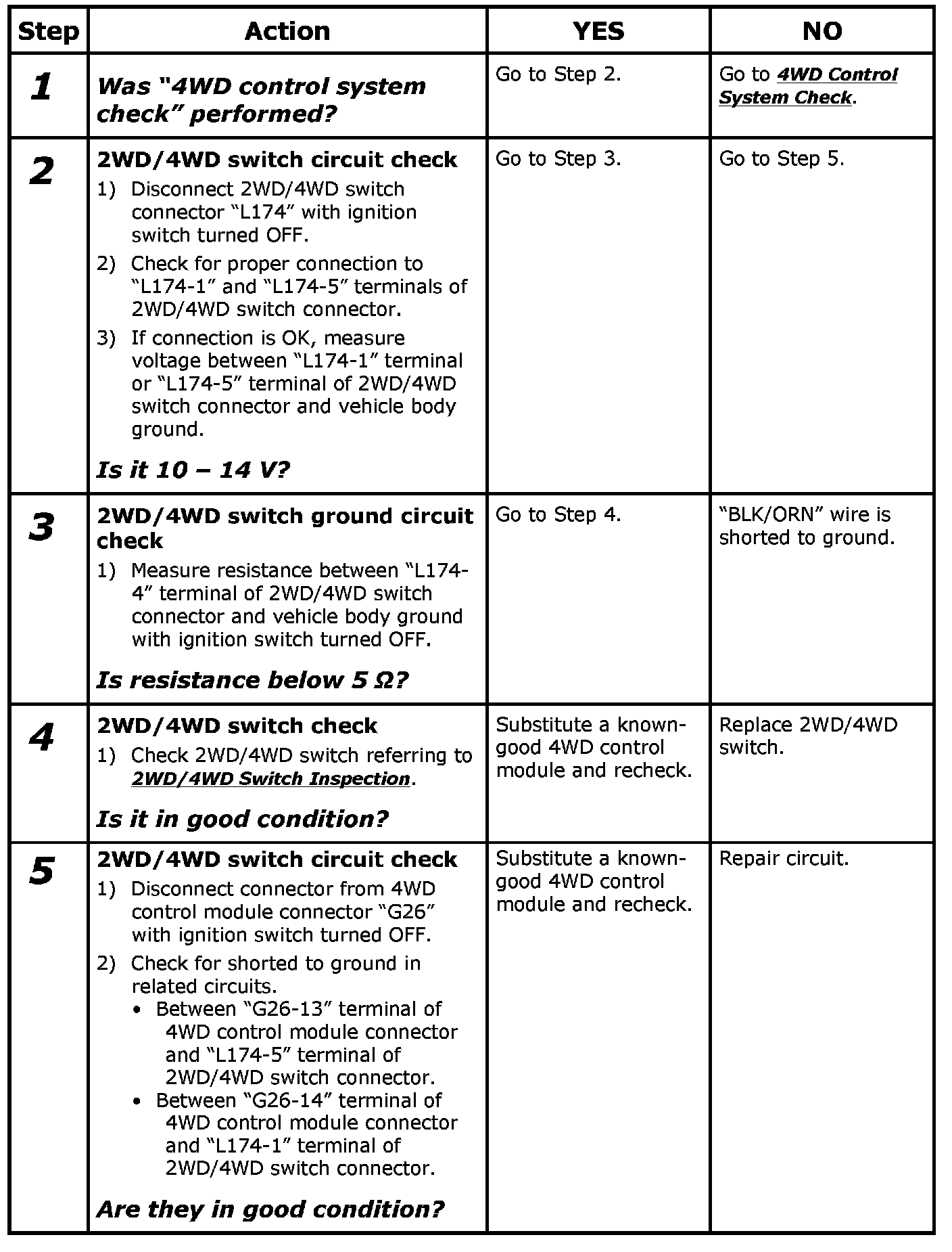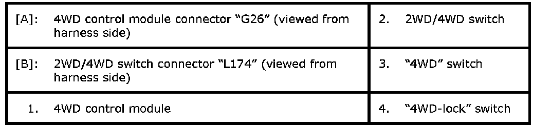 2) Select 2WD/4WD switch to "2WD" position and keep its position for 10 seconds. Similarly select 2WD/4WD switch to "AUTO" and "LOCK" position.