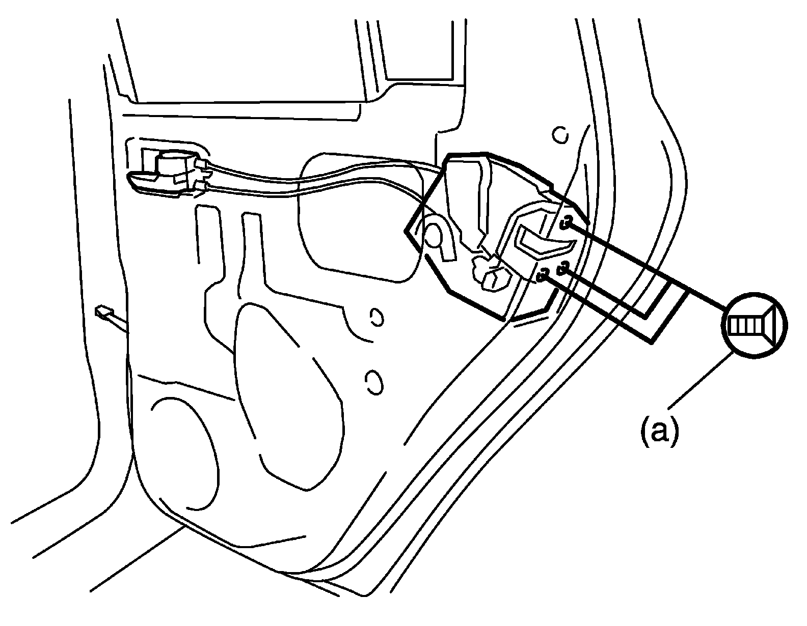 Door latch screw (a): 5.0 N.m (0.5 kg-m, 4.0 lbf-ft)