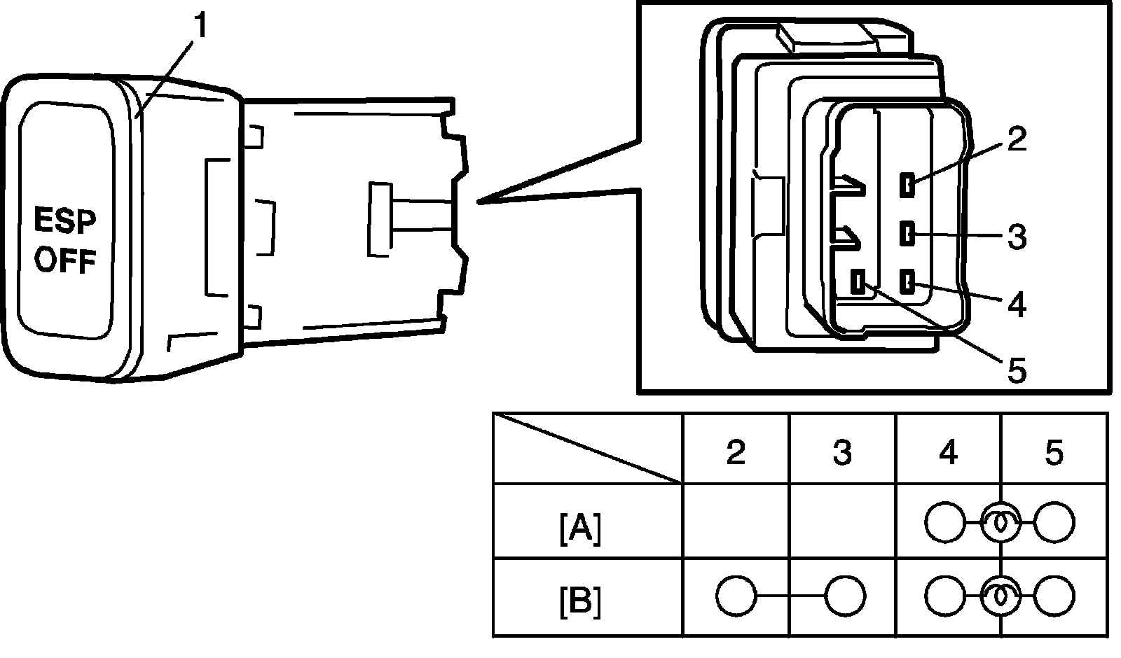 If check result is not as specified, replace ESP(R) OFF switch (1).