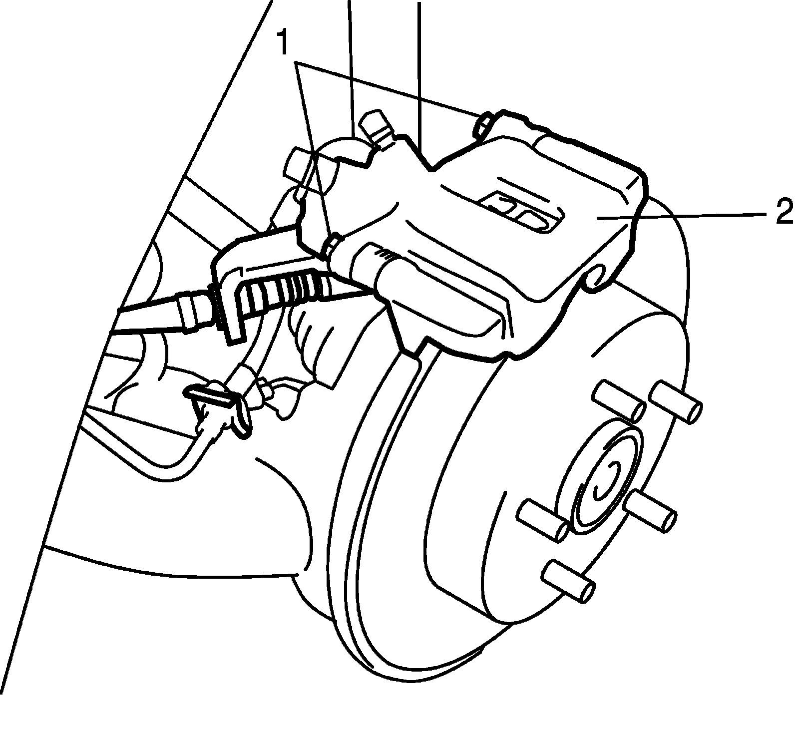 4) Remove caliper (2) from caliper carrier.
