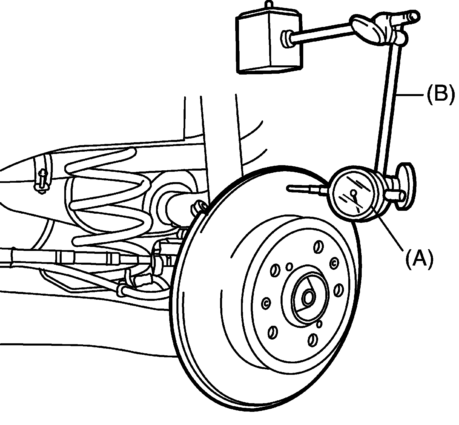 ^ Using micrometer, measure thickness of brake disc.