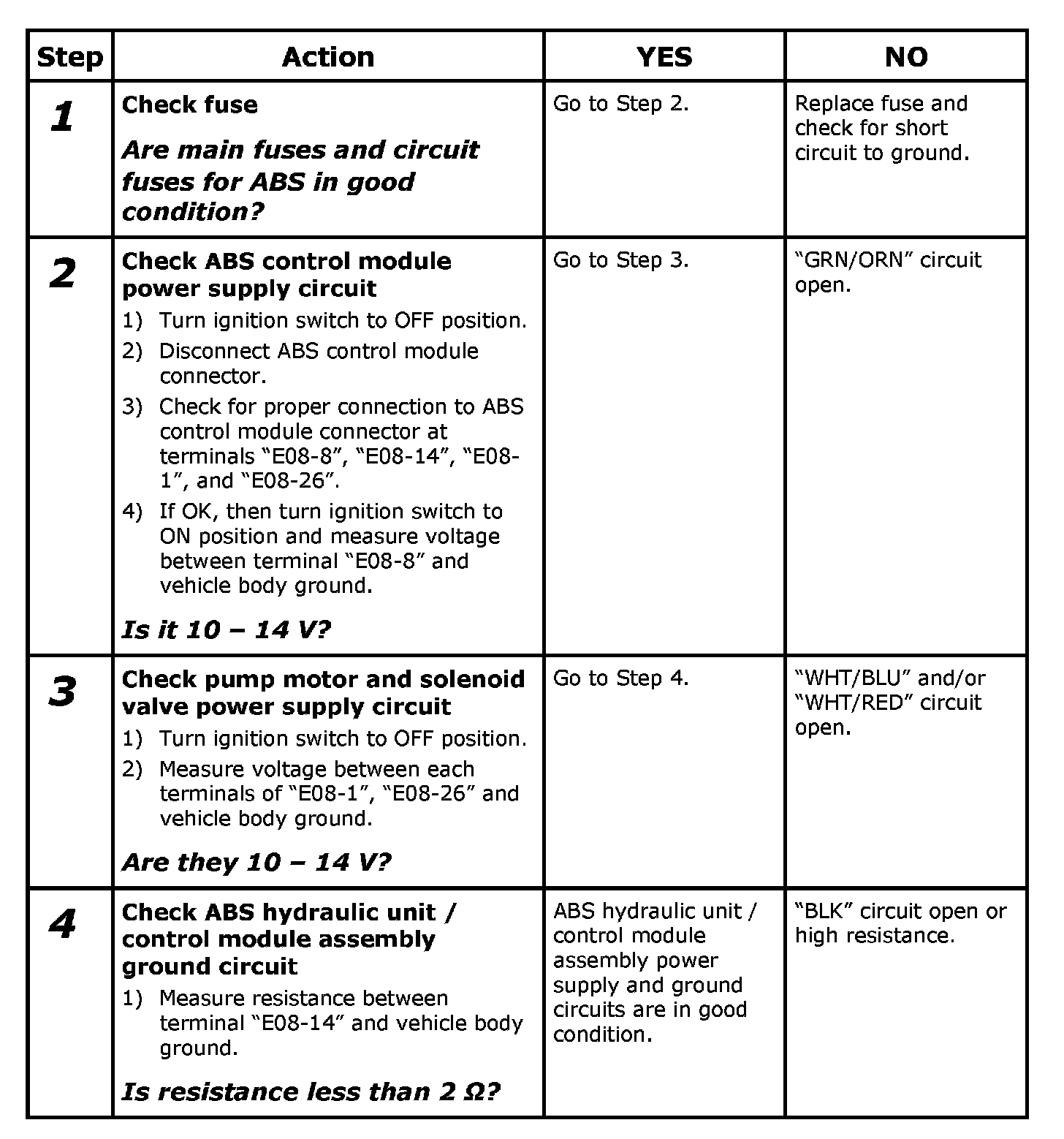 ABS Hydraulic Unit / Control Module Assembly Power Supply and Ground Circuit Check