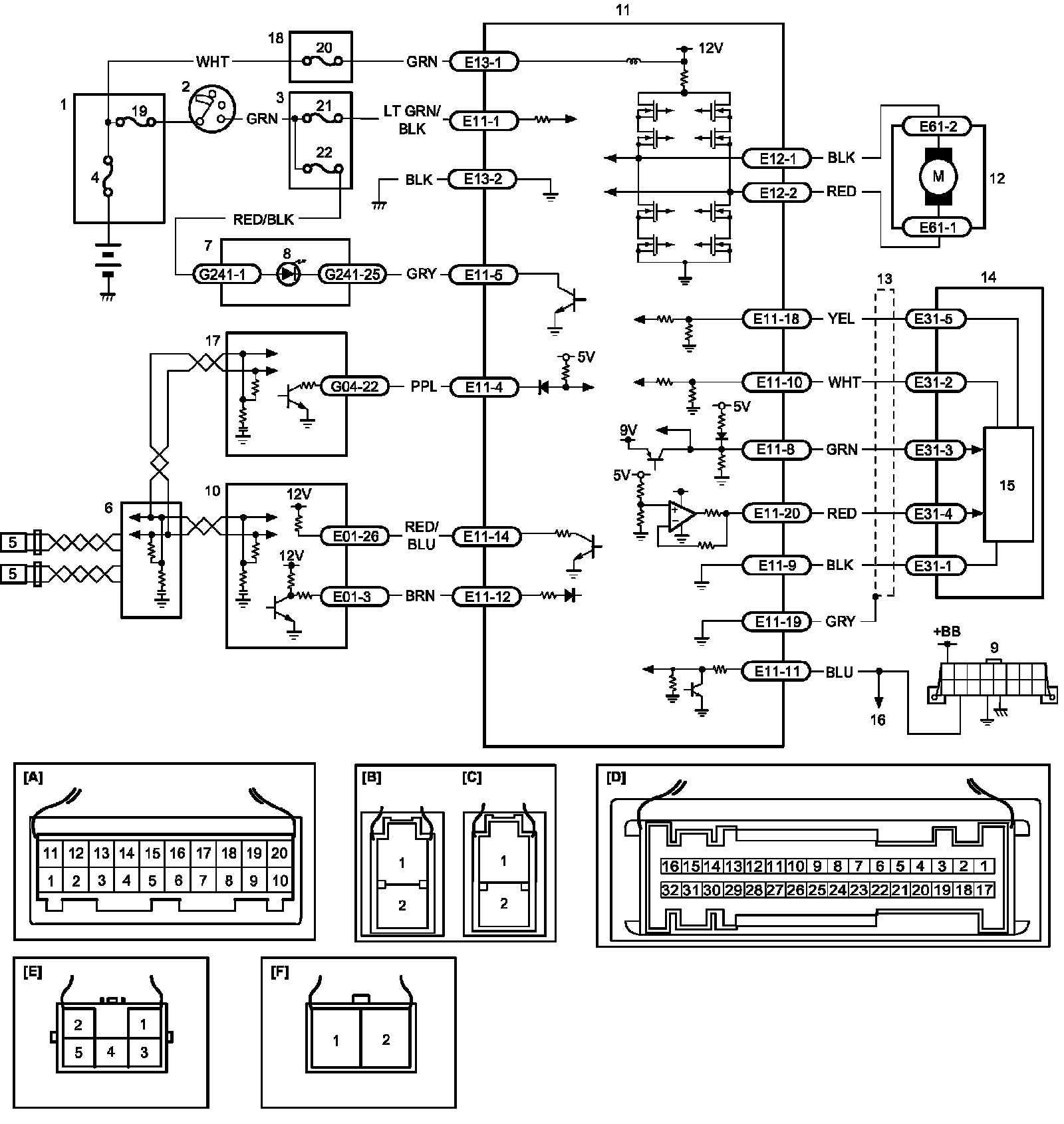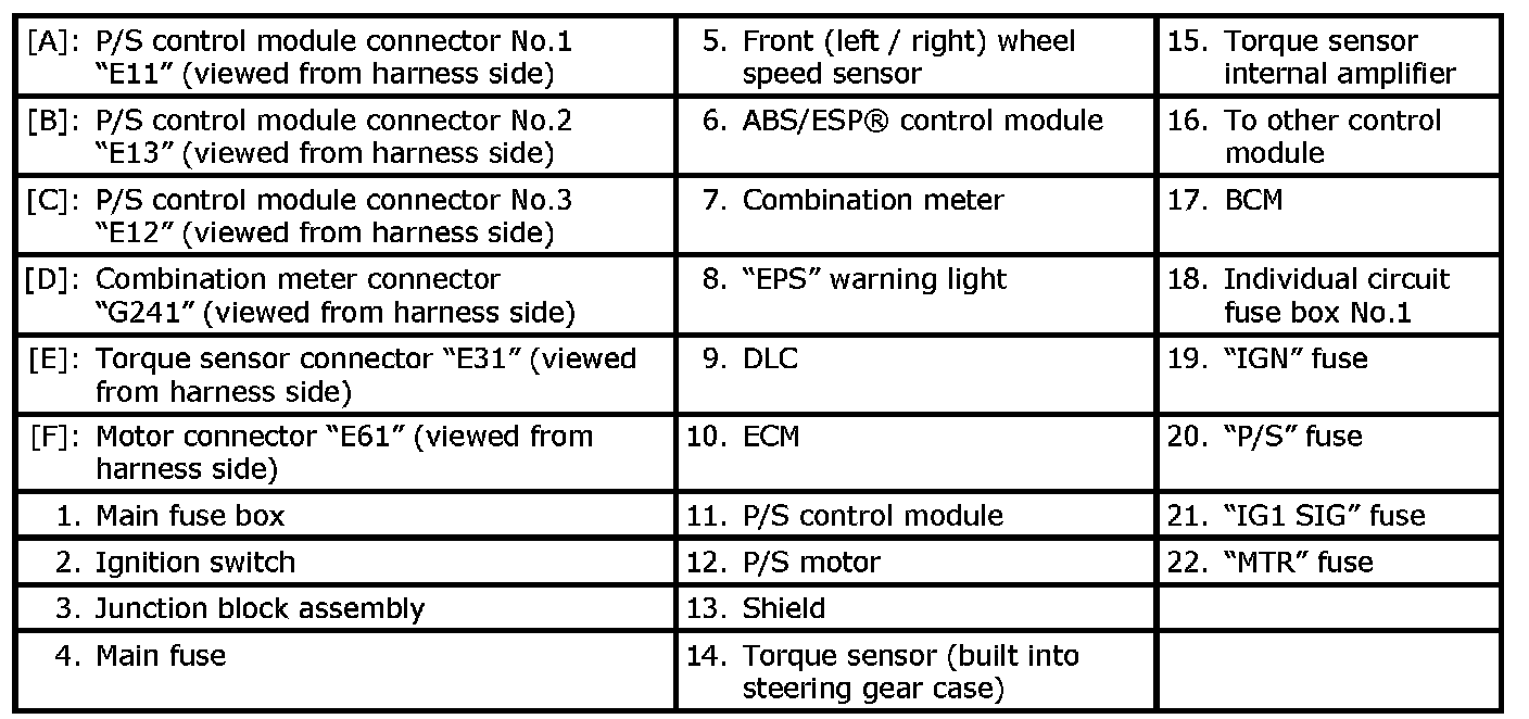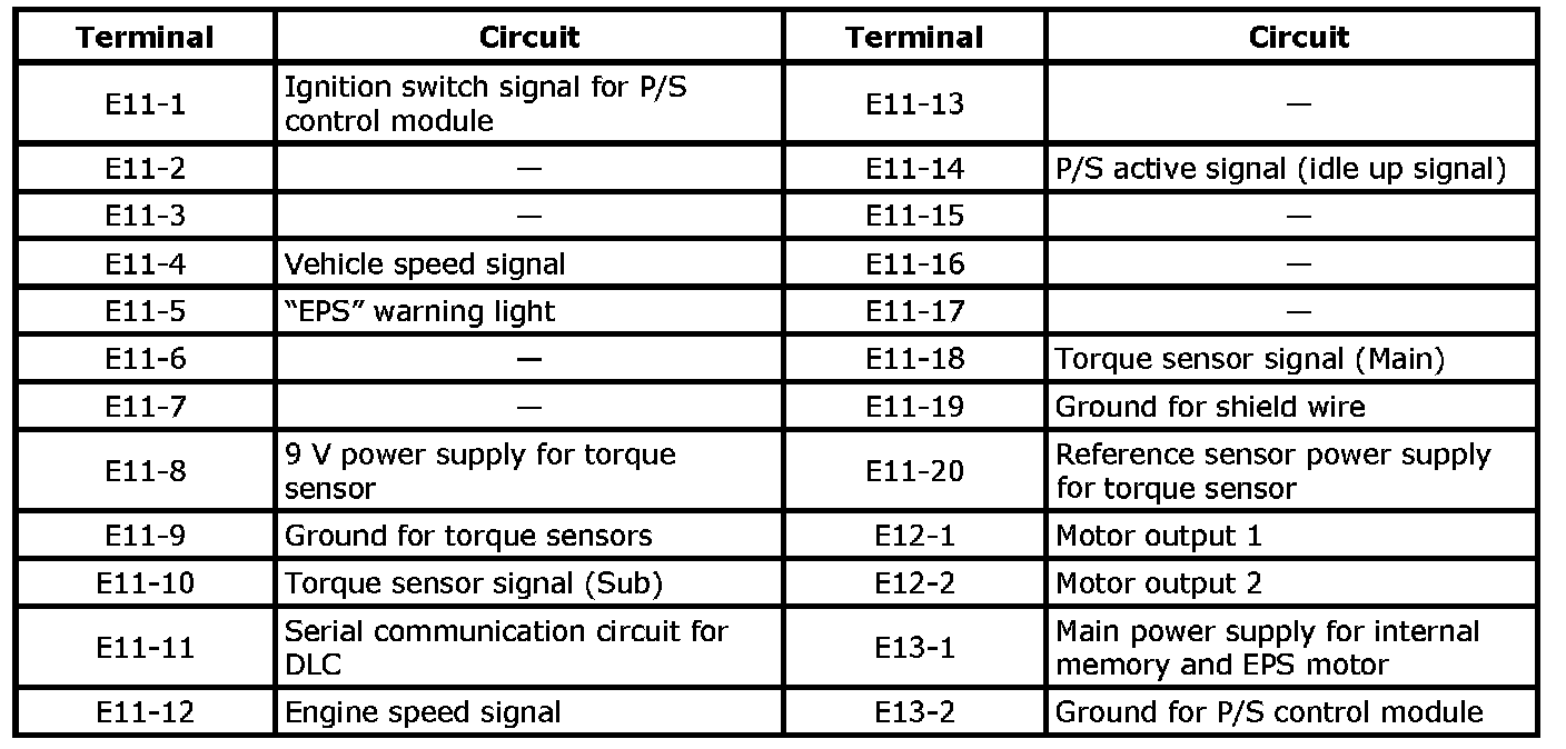 Terminal Arrangement of P/S Control Module Coupler (Viewed from Harness Side)