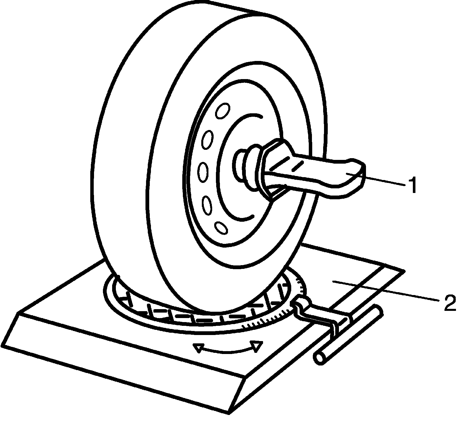 Camber Caster and Kingpin Inclination Angle InspectionCheck camber, caster and kingpin inclination angle by camber caster kingpin gauge (1) and turning radius gauge (2). If measured value is out of specified value, check following items for damage, deformation and crack. If any faulty condition is found, repair or replace defective item.