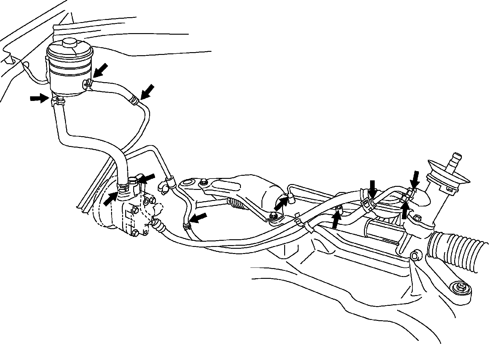 P/S Fluid Leakage CheckStart engine and turn steering wheel fully to the right and left so that maximum hydraulic pressure is provided. Then visually check gear case, P/S pump and P/S fluid reservoir themselves and each joint of their connecting pipes for leakage.
