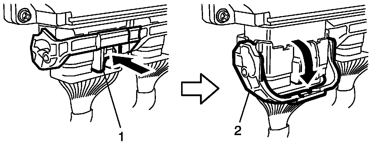 4. Remove ECM (1) from battery tray by removing its mounting nuts (2).