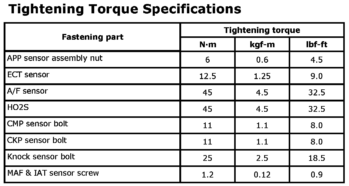Tightening Torque Specifications