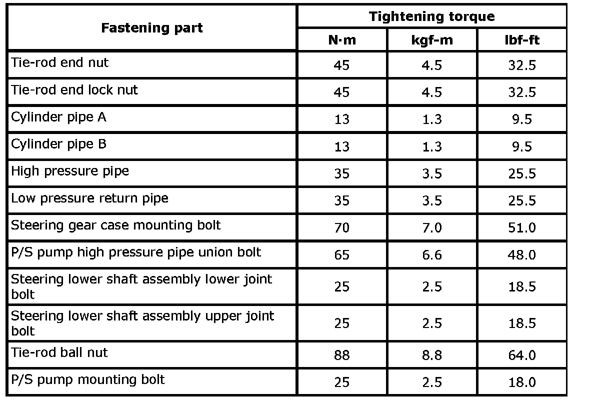 Tightening Torque Specifications