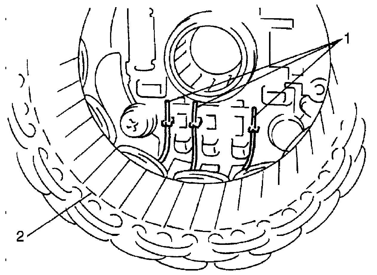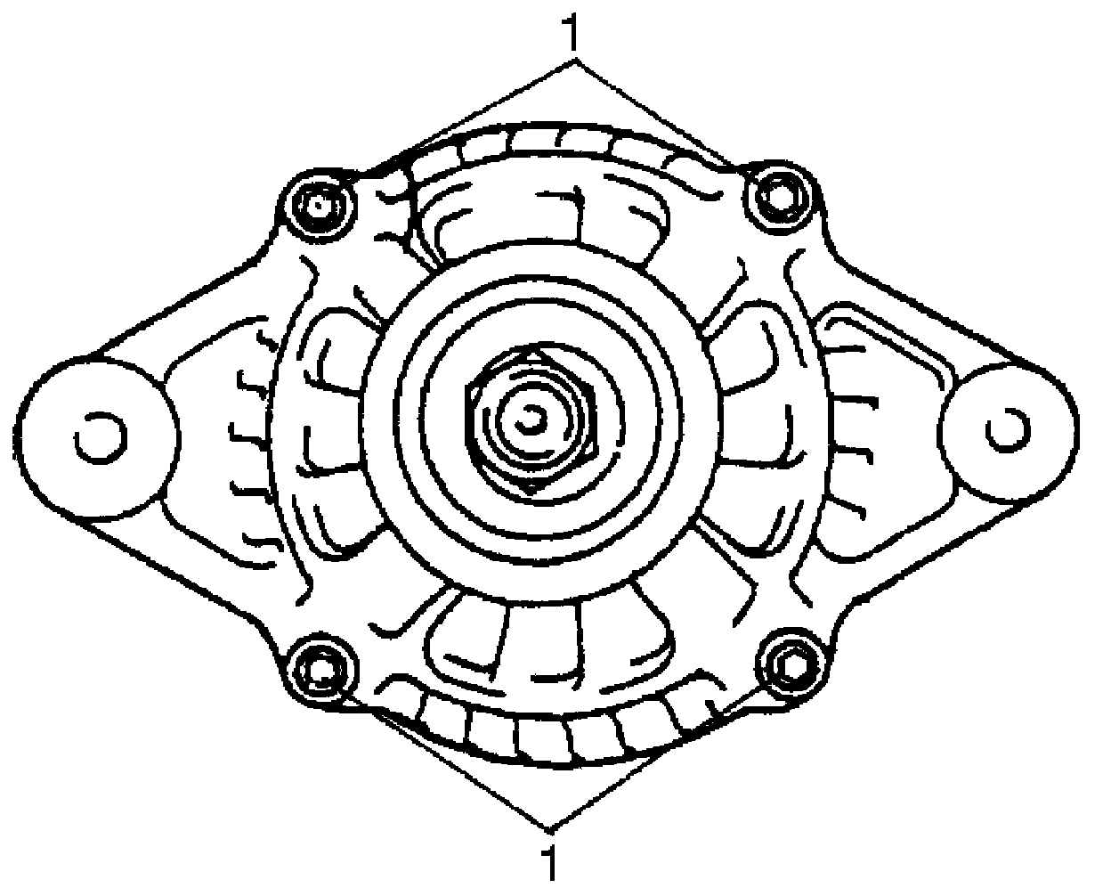 9. Remove three screws (1) and generator "B" terminal nut (2).