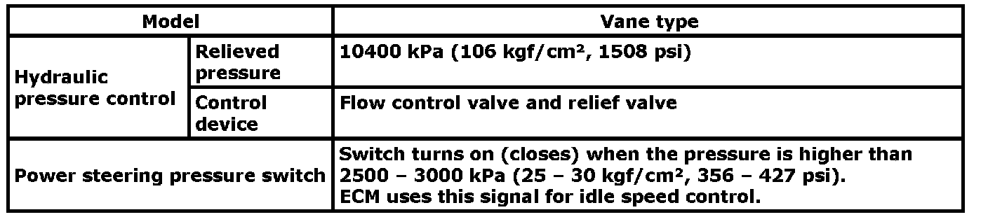 Power steering (P/S) pump specifications