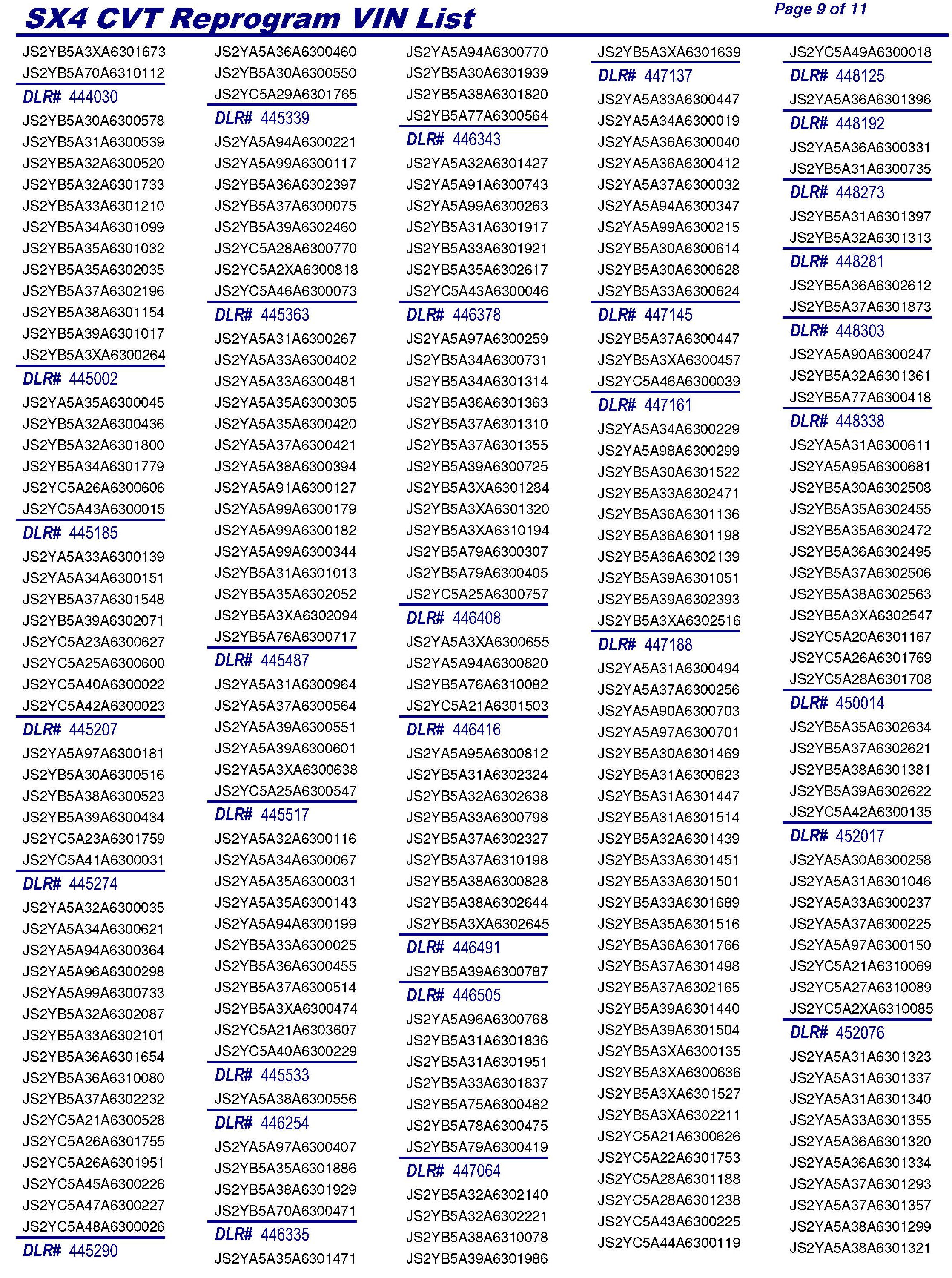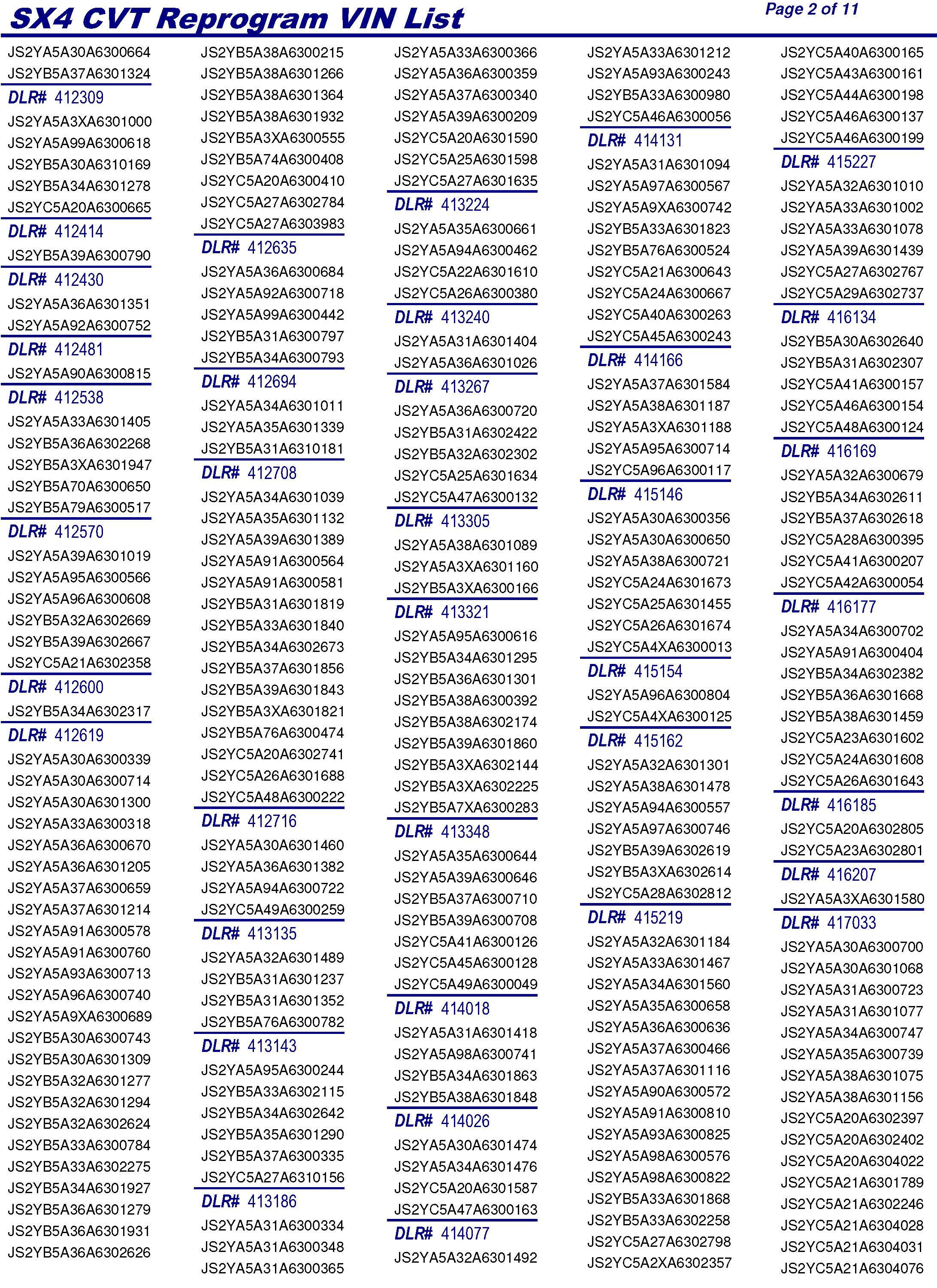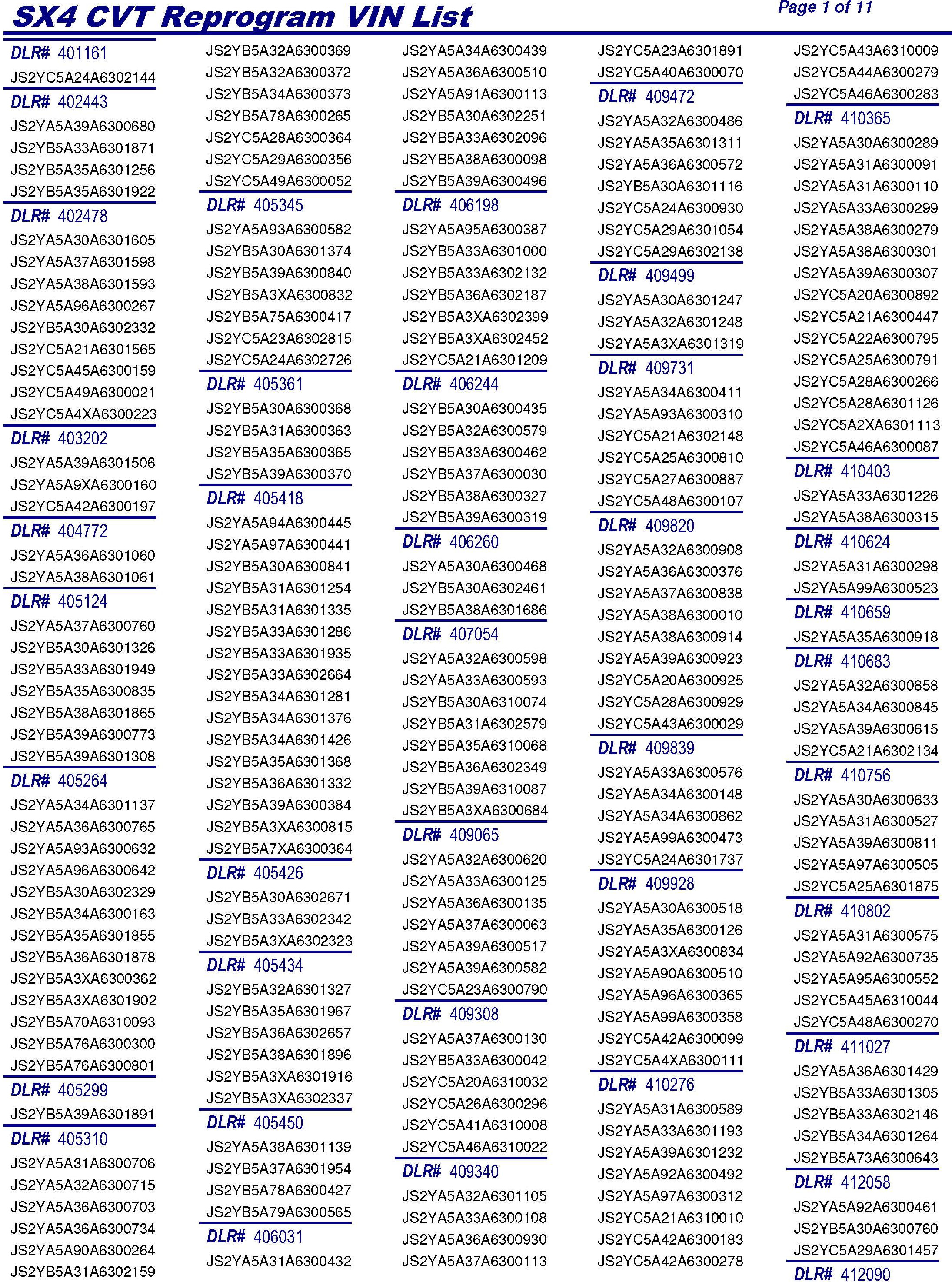 PLEASE REFER TO THE VIN LIST TO FIND ANY VEHICLES