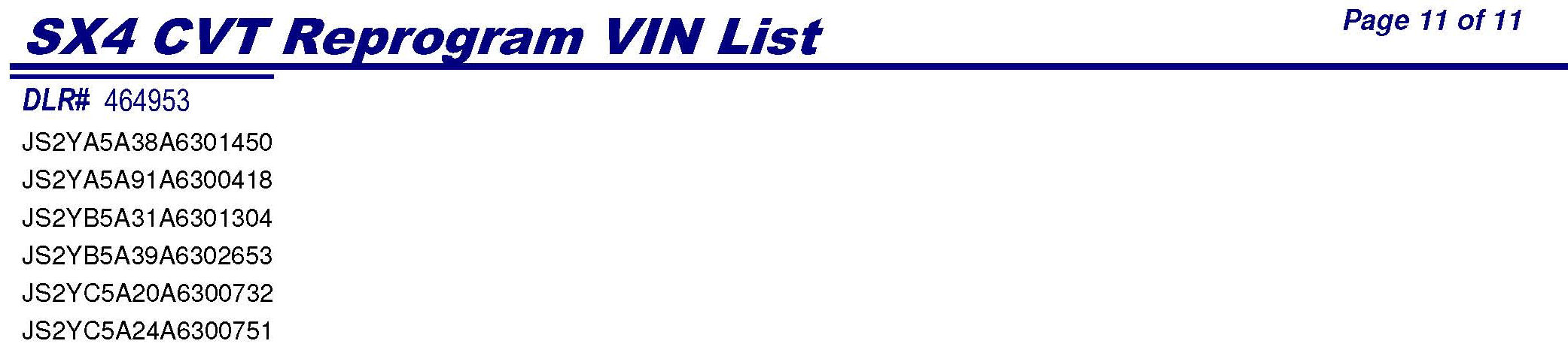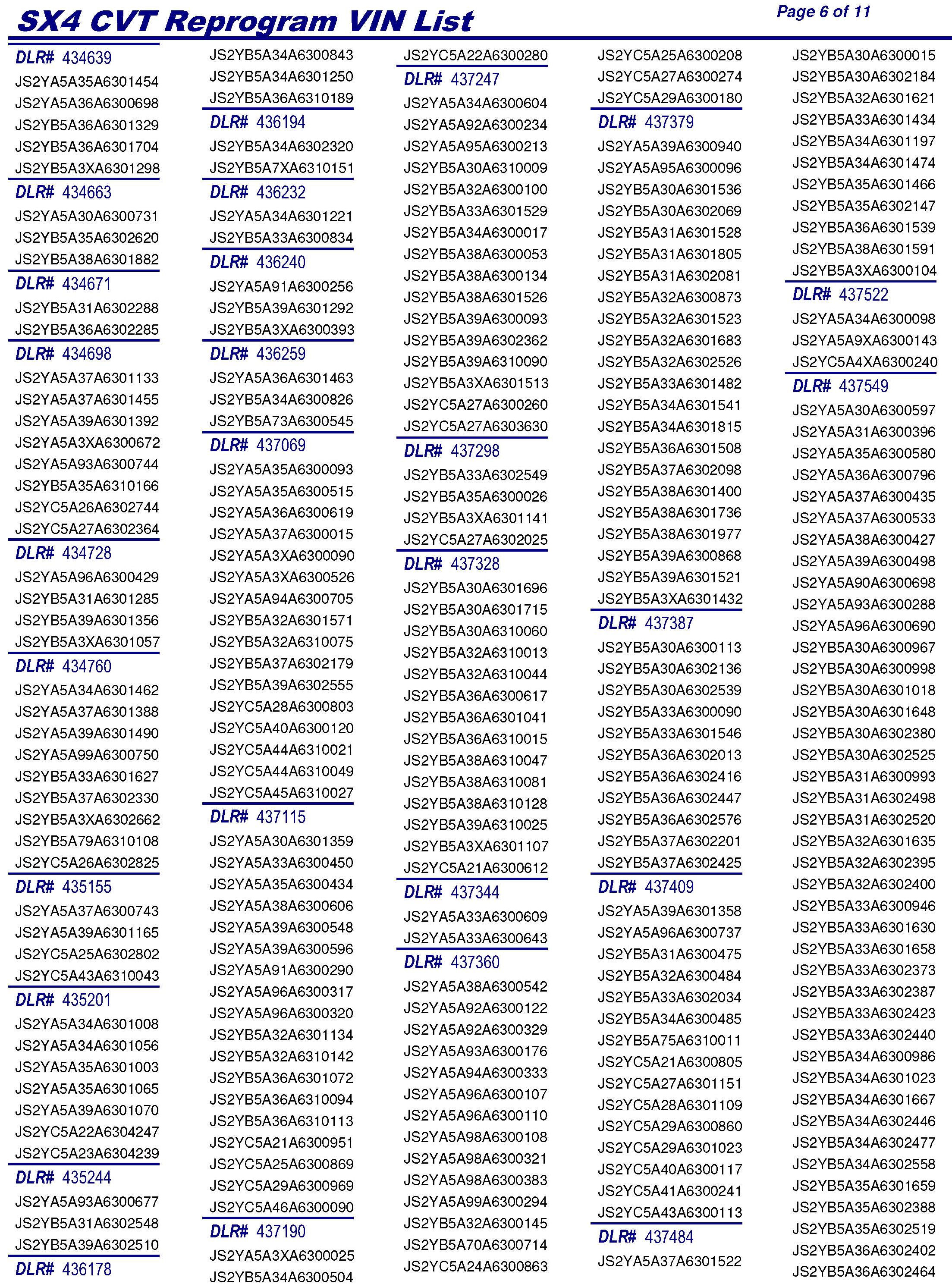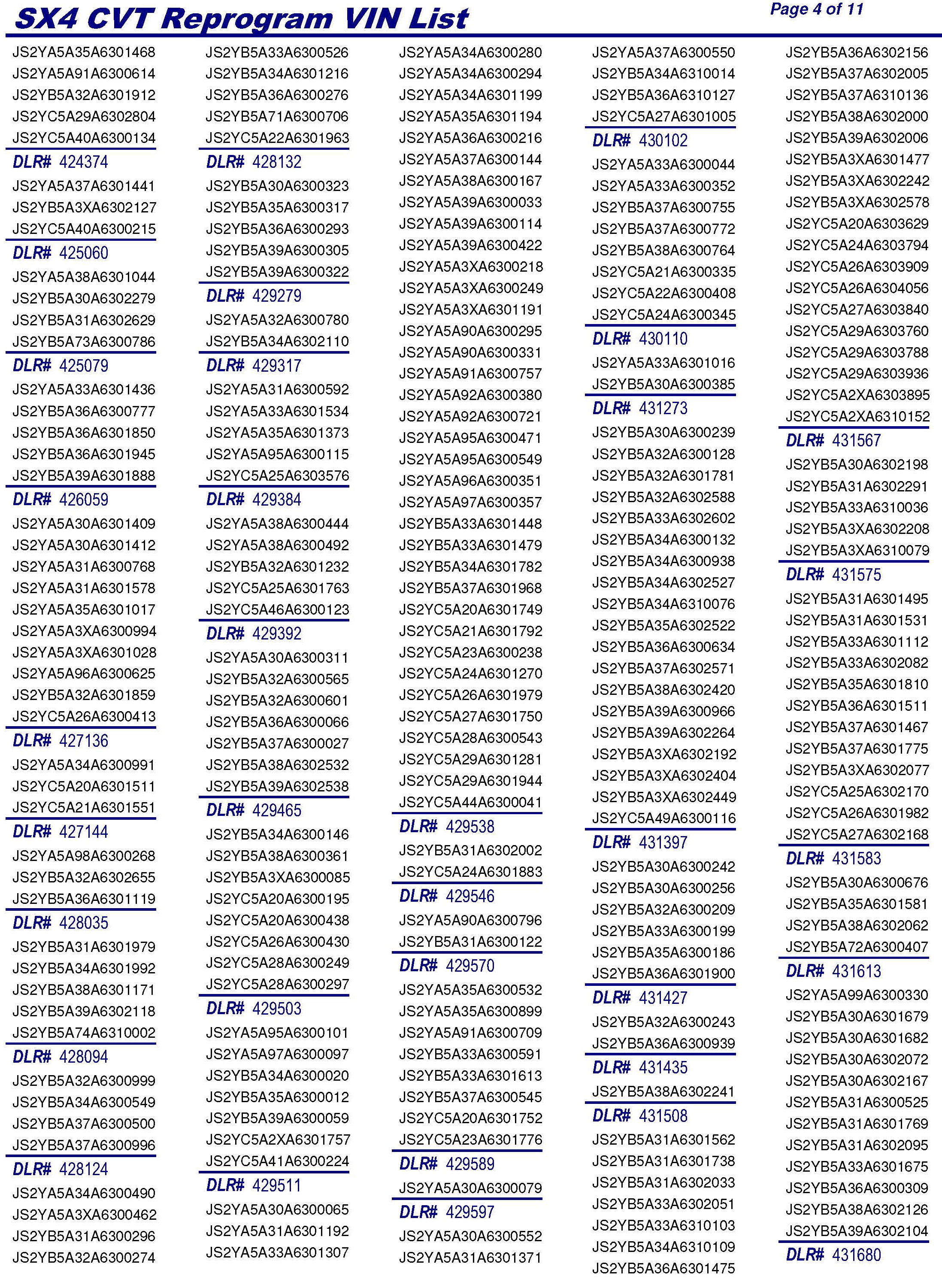 PLEASE REFER TO THE VIN LIST TO FIND ANY VEHICLES
