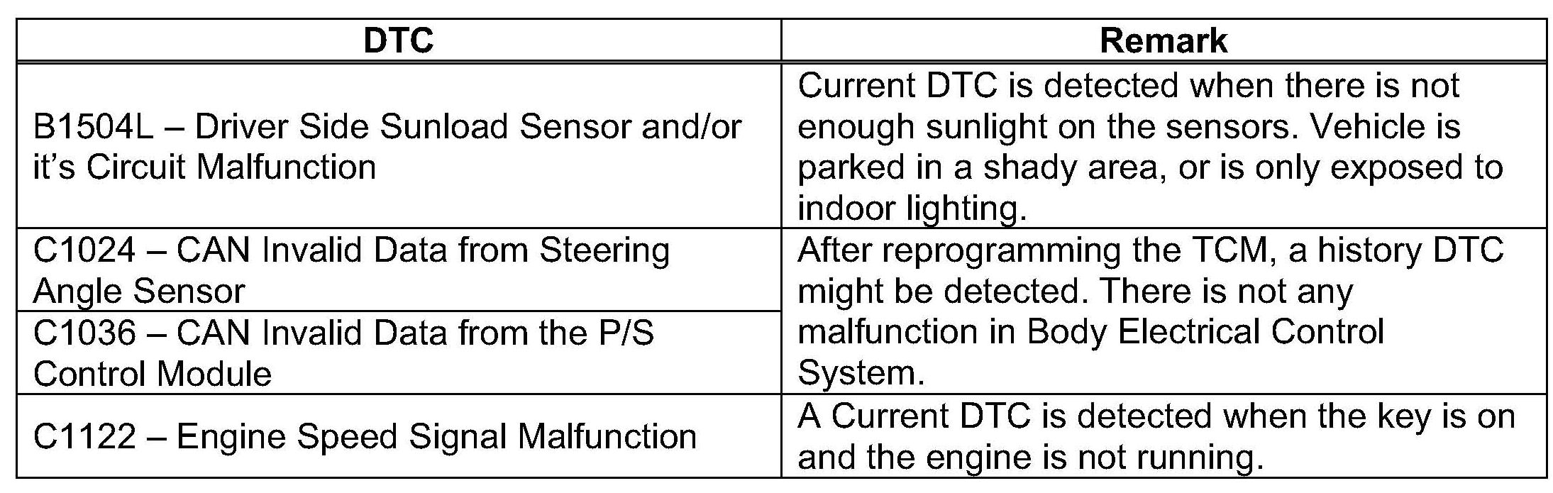 17. Using the SDT scan tool, once again check for DTC's that may have triggered during the reflash process. Compare the findings with the codes you recorded in Step 2 before starting the process, and to the chart of "expected" DTC's. Diagnose all codes not related to the programming and not in the chart.