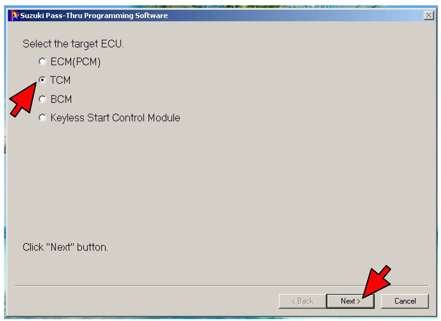 7. Select TCM as the target ECU, then click "Next".