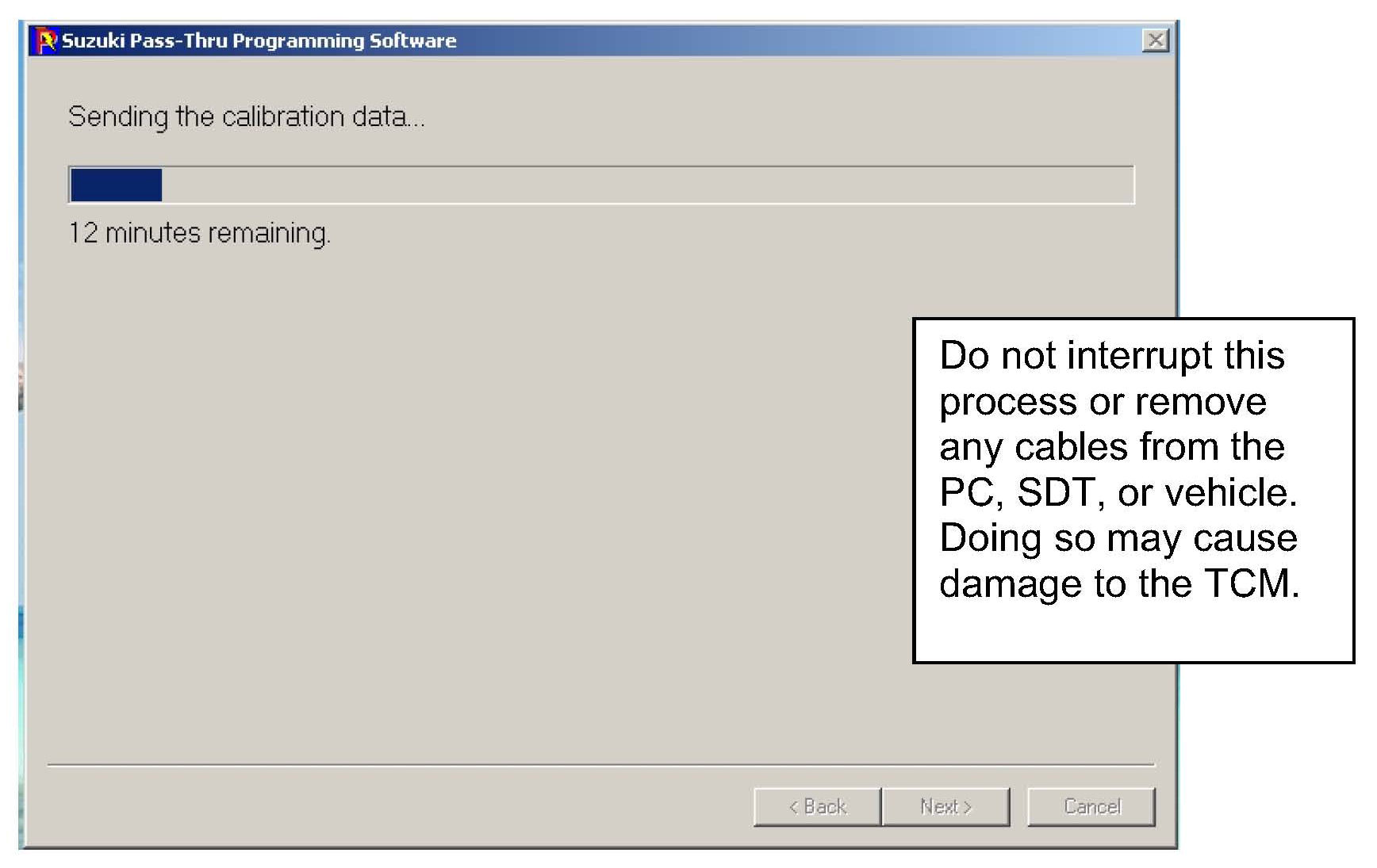 You should now be looking at the following screen indicating that communication between the PC and the TCM is being initialized.