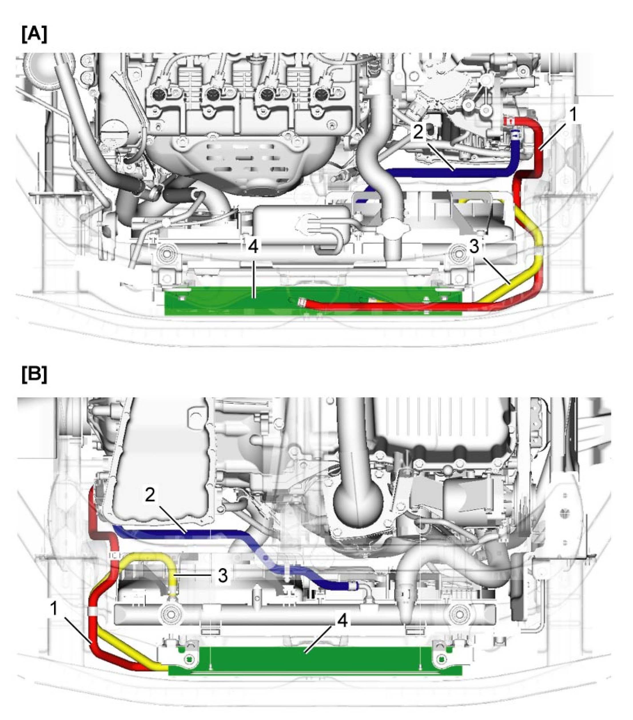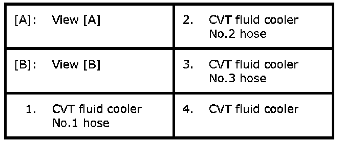 CVT Fluid Cooler Hoses ReplacementRubber hoses for CVT fluid cooler should be checked at specified interval. If replacing them, be sure to note the following.
