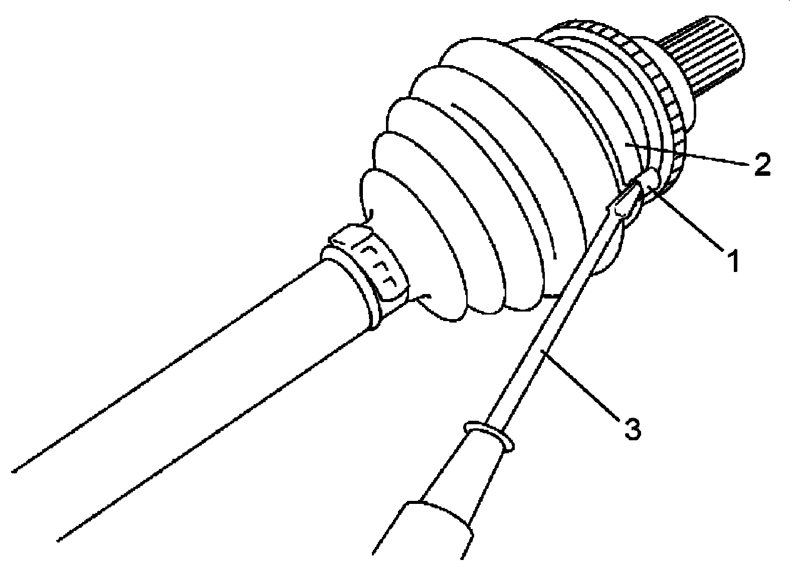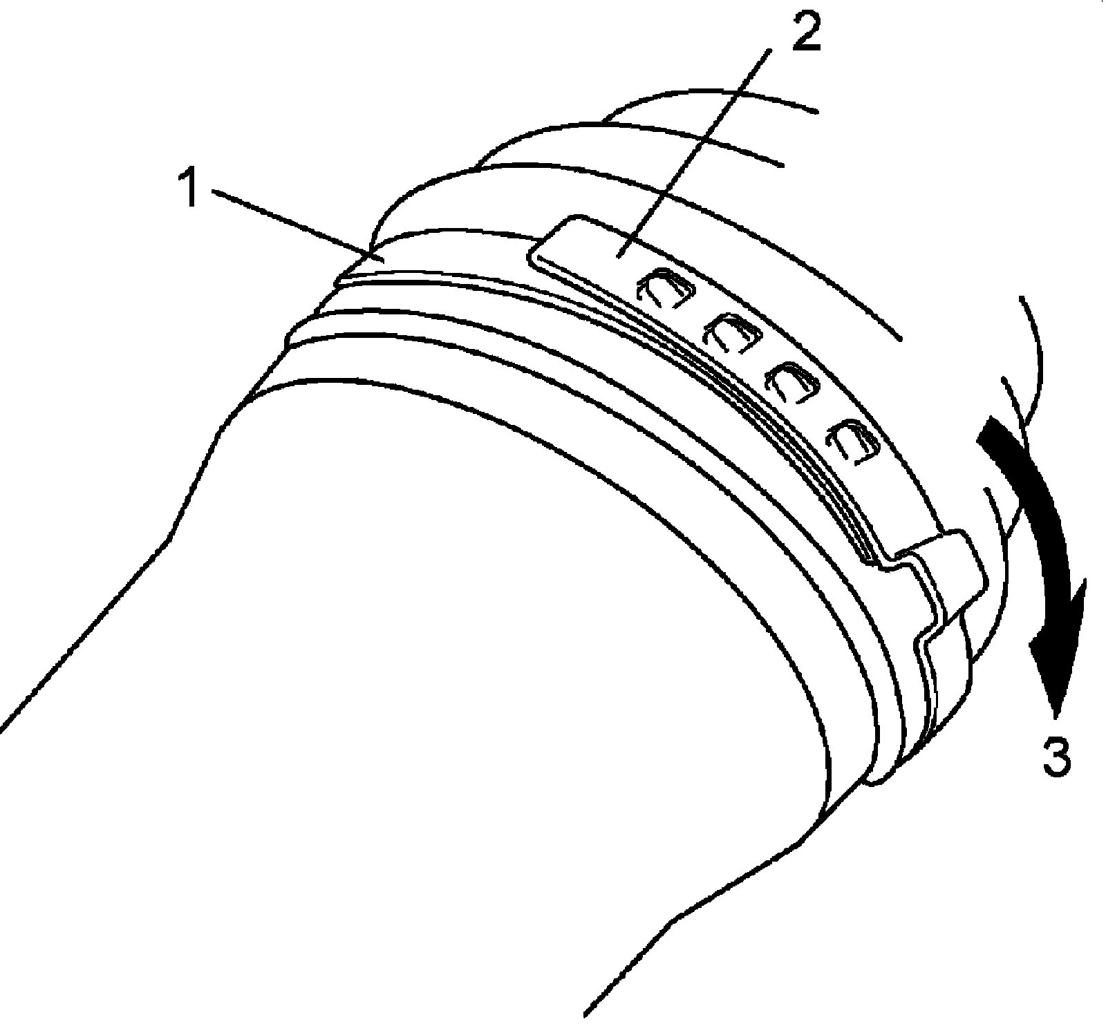 - Place new wheel side boot big band (1) onto boot putting band outer end (2) against forward rotation (3) as shown in figure.
