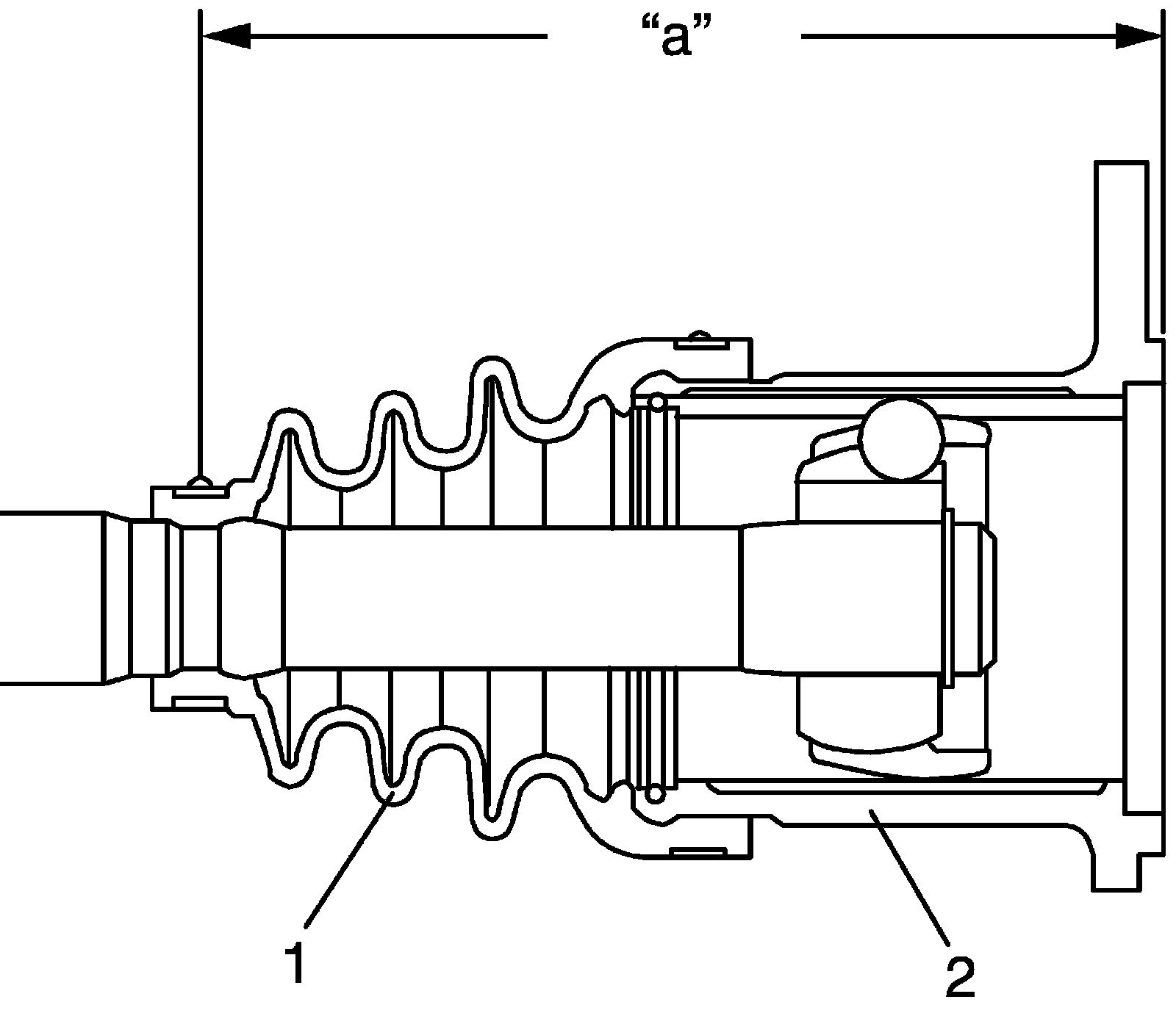 - Fit boot (1) to grooves of shaft and housing (2) adjust length to specification below.