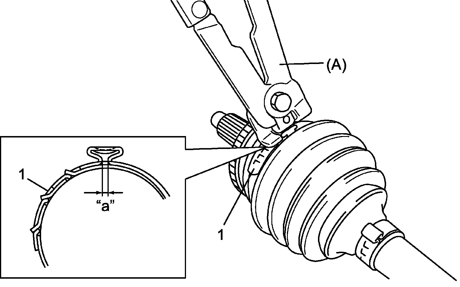 - Fasten boot band (1) securely using special tool as shown in figure.
