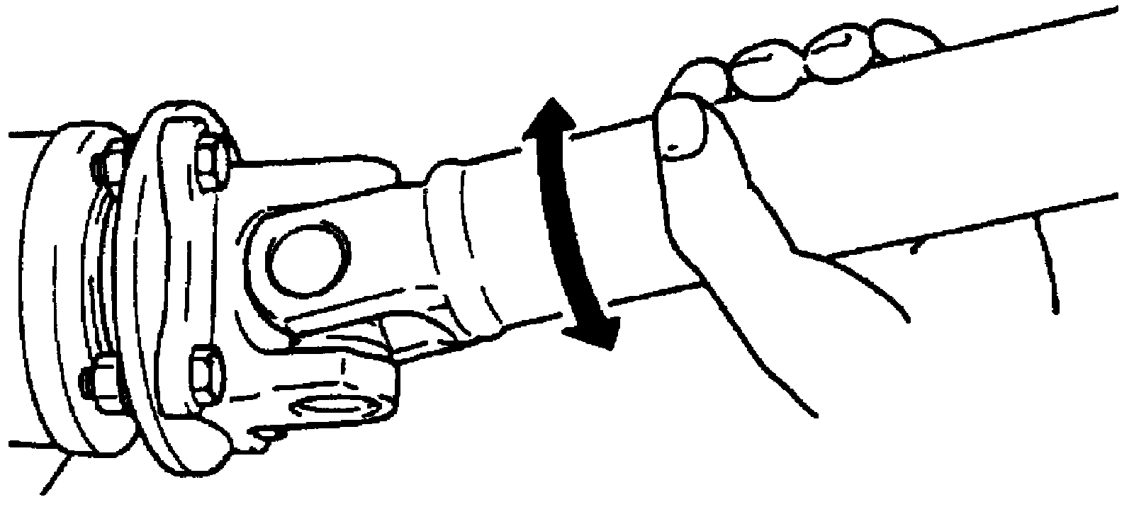 Propeller Shaft Joint CheckIf universal joints and ball joint are suspected of producing chattering or rattling noise, inspect them for wear. For universal joint, check to see if cross spider rattles in yokes are worn down and replace defective propeller shaft assembly with new one.