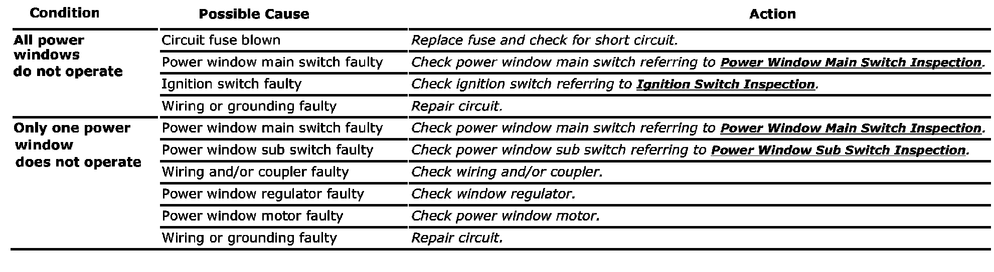 Power Window Control System Symptom Diagnosis