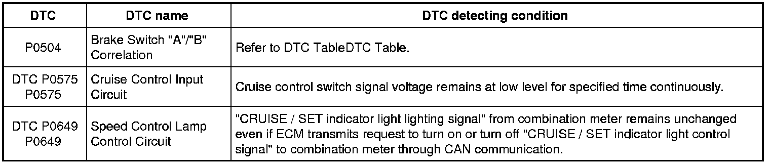 During engine running, DTC is detected by pushing cruise control switch (MAIN (ON/OFF), CANCEL, RES/ACC, or SET/COAST) for more than specified time.