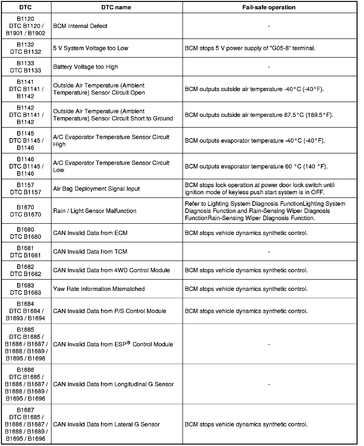 performs fail-safe operation as long as malfunction continues to exist. That operation is canceled when BCM recovers normal condition.