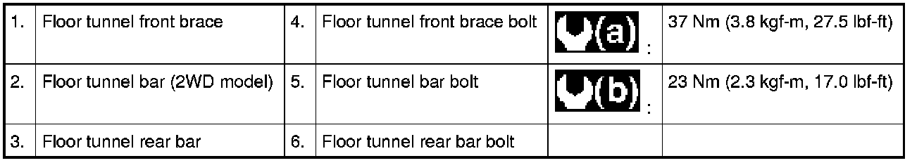 Floor Tunnel Front Brace, Floor Tunnel Bar (2WD Model), Floor Tunnel Rear Bar Removal and Installation