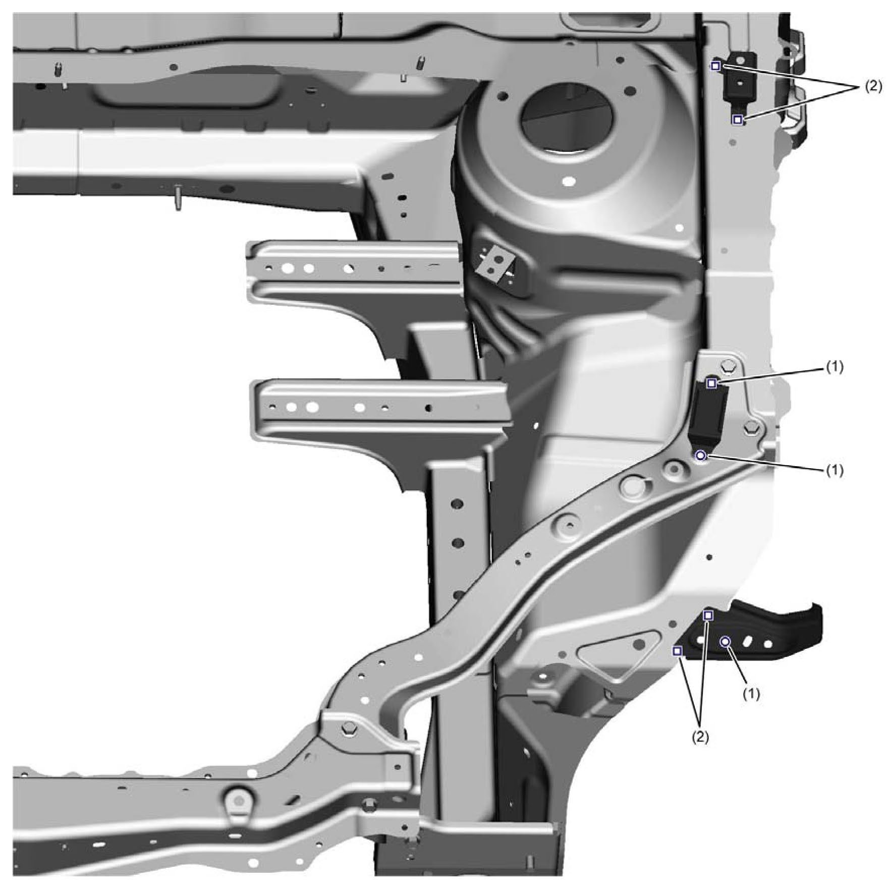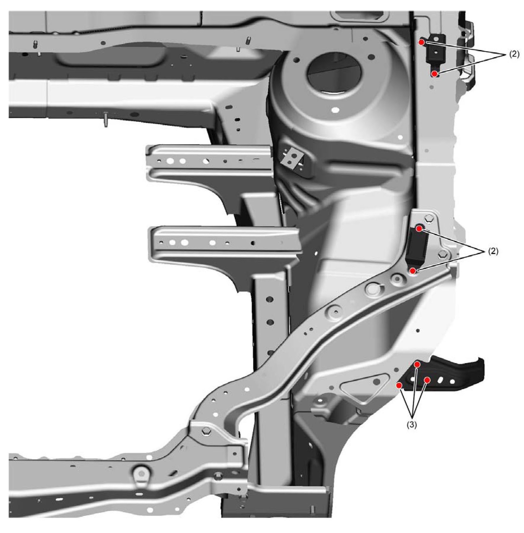 - Welding method and number of welding points are the same on both sides. This repair instruction shows procedure for left side.