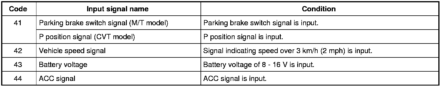 Items that can be monitored/diagnosed in the diagnosis mode are shown in the following tables. Buzzer beep patterns representing individual input signal/error codes are also shown here.