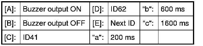 Input signal/error codes are indicated by the number of times the buzzer beeps. The following example shows beep patterns for input signal code "41" and error code "62".
