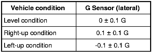 5) Check "G Sensor (Lateral)" under "DATA LIST" of SUZUKI scan tool in the following vehicle conditions.